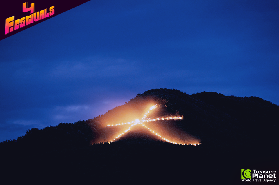 4.”เทศกาลจุดกองไฟ บนภูเขาทั้ง 5 ของเกียวโต